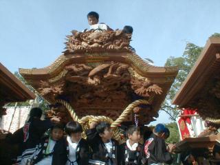 大鳥神社境内に勢揃いした地車(右から新在家・北王子・野代・長承寺・上) |