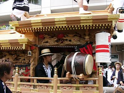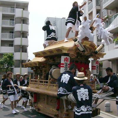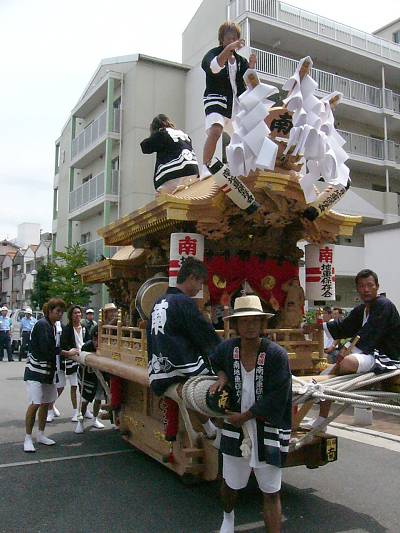 平成15年8月31日、東大阪市稲田八幡宮の稲田南地車修理完成お披露目曳行を