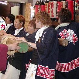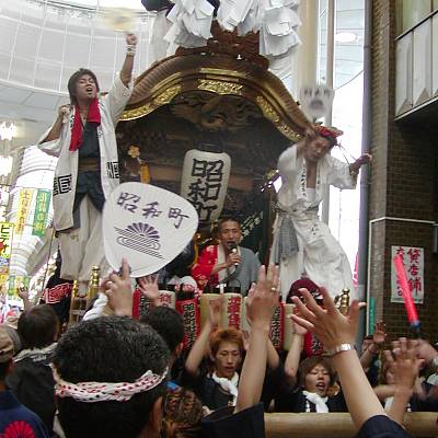 ご祝儀をもらって万歳三唱する昭和町地車 |