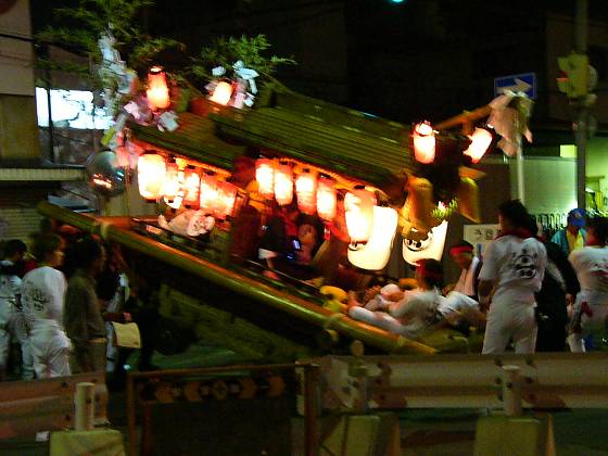 平成15年10月12日、大阪市平野区赤坂神社の長吉六反地車秋祭り曳行を
