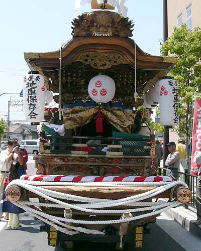 | 岩田地車(石田神社) 昭和23年「大音」製作、彫師松田正幸 地車後部で奏でられる笛の音が独特 |