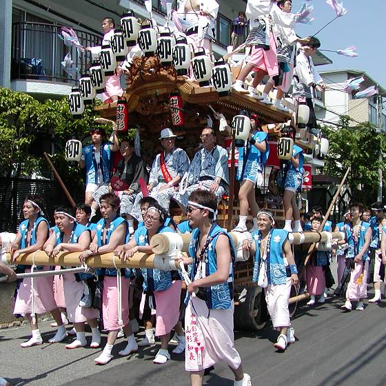 元和泉市尾井の堺型地車を神戸型に改修して曳行 |