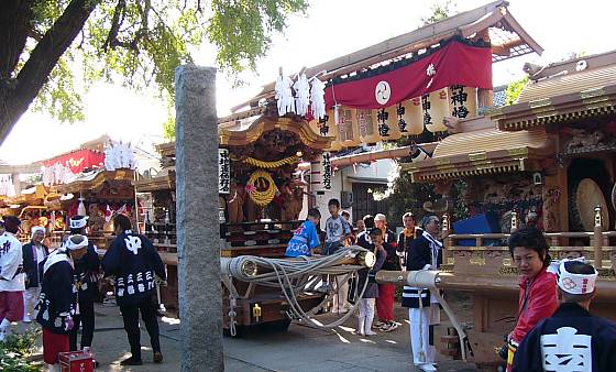 管理人地元の祭り準備の前にちょっとの時間、境内に整列した地車と