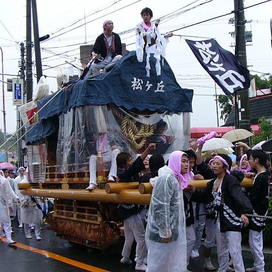 降り続く雨の中を元気よく曳行していく15台の地車の姿を撮影して回りました。
