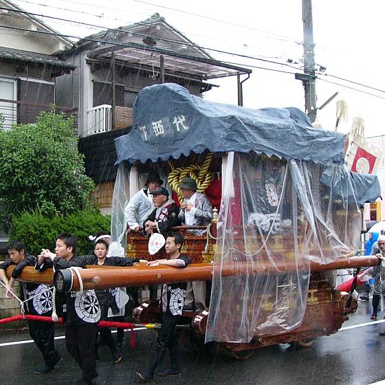 この日は天気予報どおり朝からの雨でしたが、この雨の中でも記念曳行することを