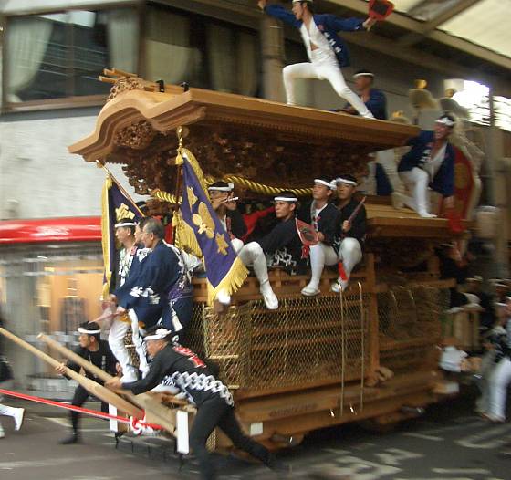 では、岸和田祭り試験曳きでの地車画像をご覧下さい。04/11/04音声追加