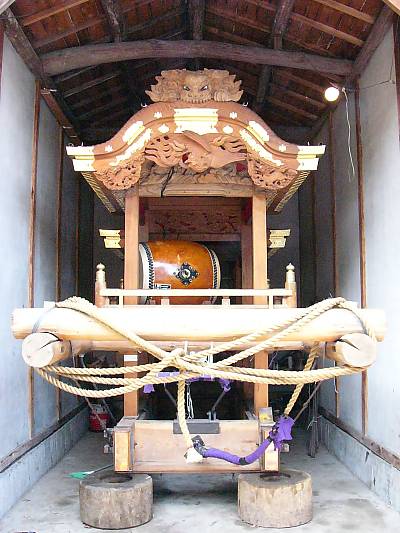 地車小屋へは地車を横へスライドさせて入れます