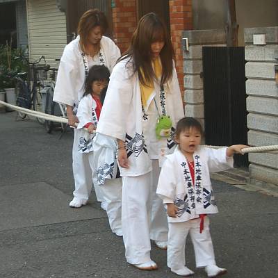 平成16年10月17日、東成区八王子神社秋祭りでの中本地車曳行に参加してきました。