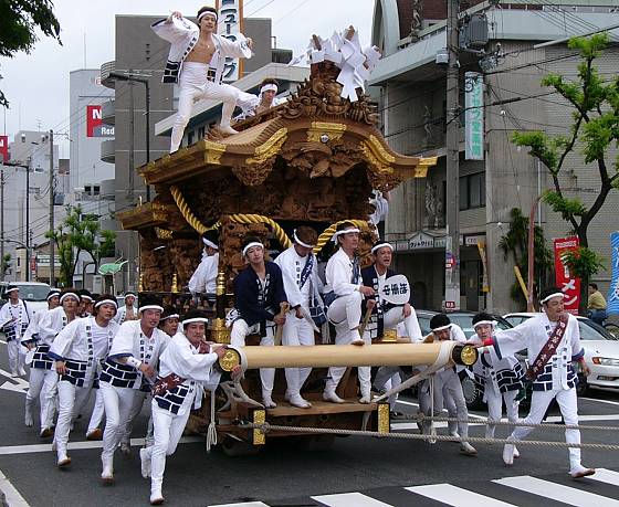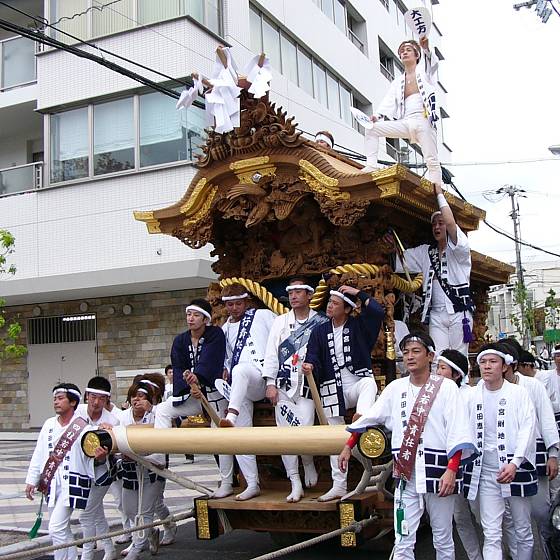 平成16年5月9日、福島区の野田恵美須神社宮附地車の大修理お披露目曳行を