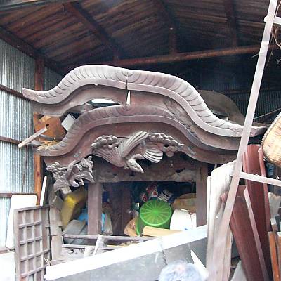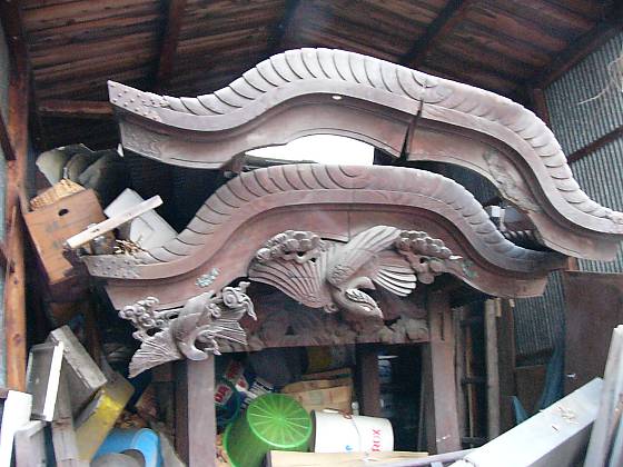 地車の周りのガラクタを片付け、さらに中へ入っていくが勾欄も屋根板もばらばら。