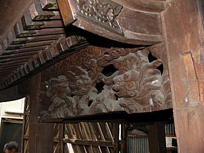 こちら側に地車後部が見える形で小屋の中に納められているが、小屋根の