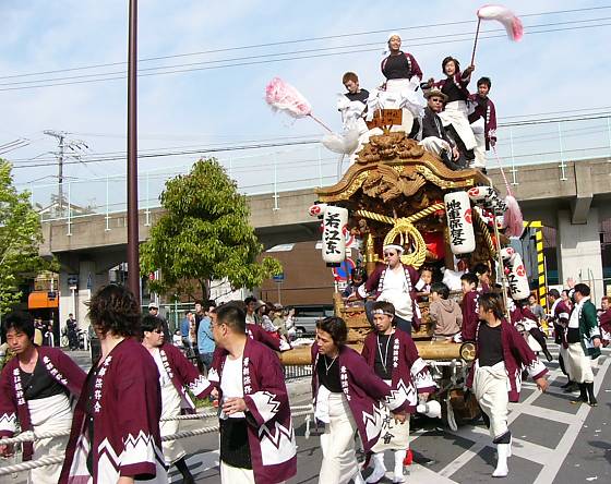 だんじりの横にも子ども達が乗っていますね、気をつけてや〜