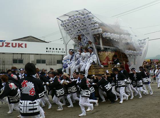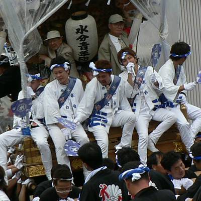 では、千早赤阪だんじり祭り画像その3:宮入1番の水分地車画像をご覧ください。