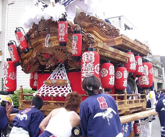 新庁舎横の路地を曳行中の鶴橋地車