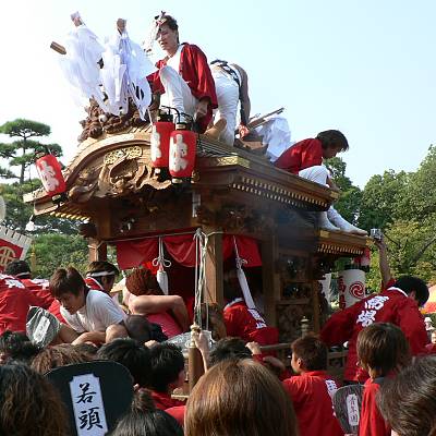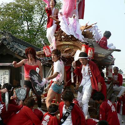 では、羽曳野市誉田だんじり祭り画像その2:馬場町をご覧ください。2005.11.5音声追加