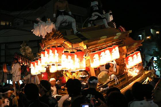 夕方の越木岩会館辺りでの休憩中から苦楽園口へ向かう曳行、そして駅前での