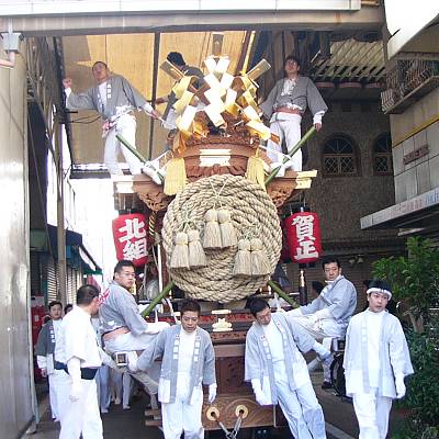 では、杭全神社注連縄奉納での野堂北組地車画像1をご覧下さい。