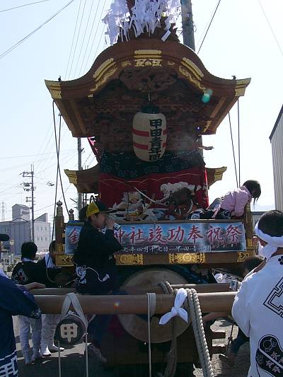 では、宮入3番目、甲田地車の画像をご覧下さい。2004.4.24音声追加