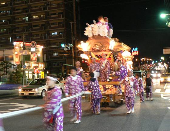 5町の夜間パレードを少し見たあと、永田地車、諏訪地車を探しに行きました。