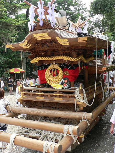 境内中央でまず拝殿へ向かって地車後方を持ち上げ礼をして