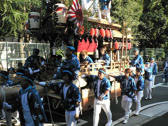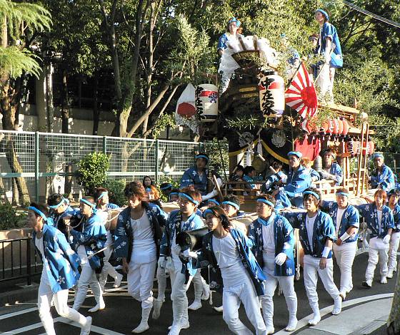 へは、まず貴布禰地区の8台の地車が集合して出発したあとに築地地区の