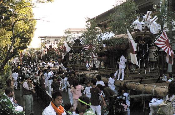 へは、まず貴布禰地区の8台の地車が集合して出発したあとに築地地区の