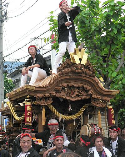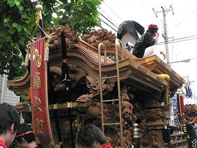 神社南側で数台の地車が見えたので、今度は駐車場を求めて徘徊。