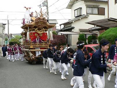 地車小屋前を出発し、樫山の住宅街の中を曳行していきました。