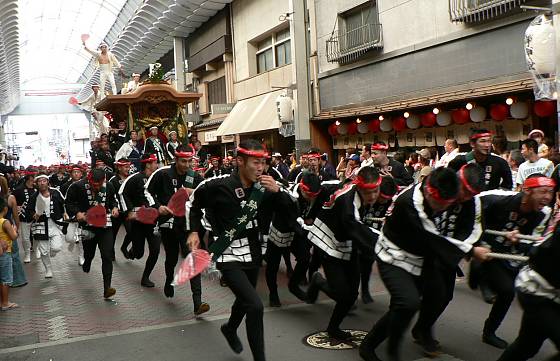 商店街に響き渡る歓声と太鼓の音、一気に気分が盛り上がります