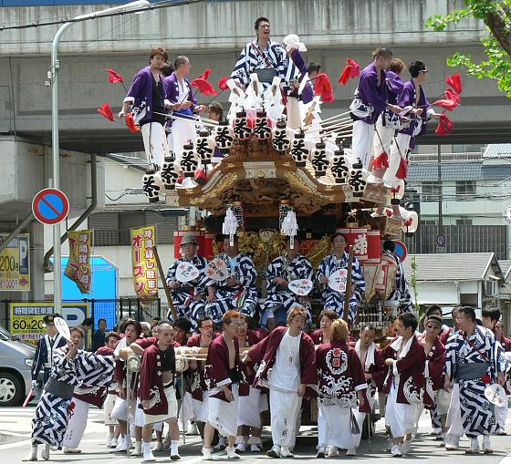 お昼頃、松原交差点辺りを曳行中の茶屋地車