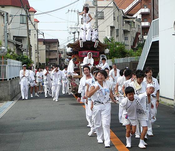 平成18年7月16日、東成区八王子神社の中本地車の曳行に参加してきました。