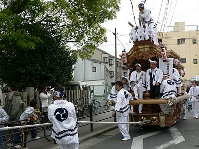 いい雰囲気の町並みを背景に西今里地車は八王子神社を目指します
