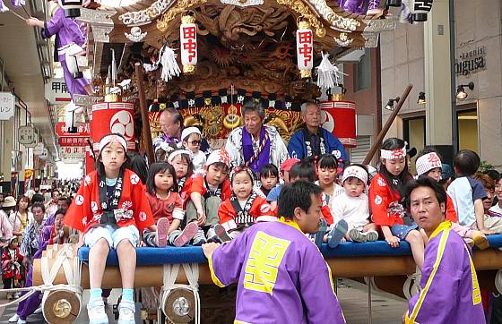 なんと地車の前にたくさんの子供たちを乗せて商店街を何回も往復している