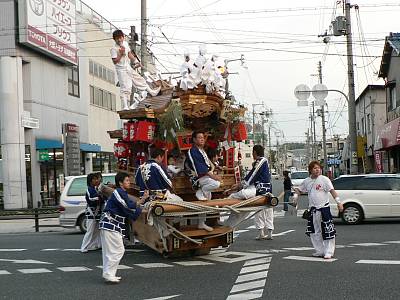 南寺方南通2交差点で地車を軽く1回転半廻して