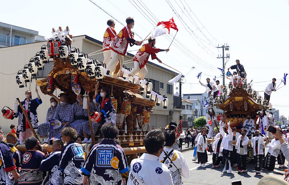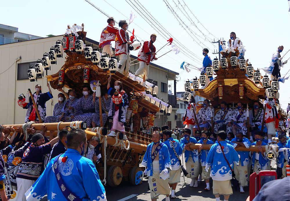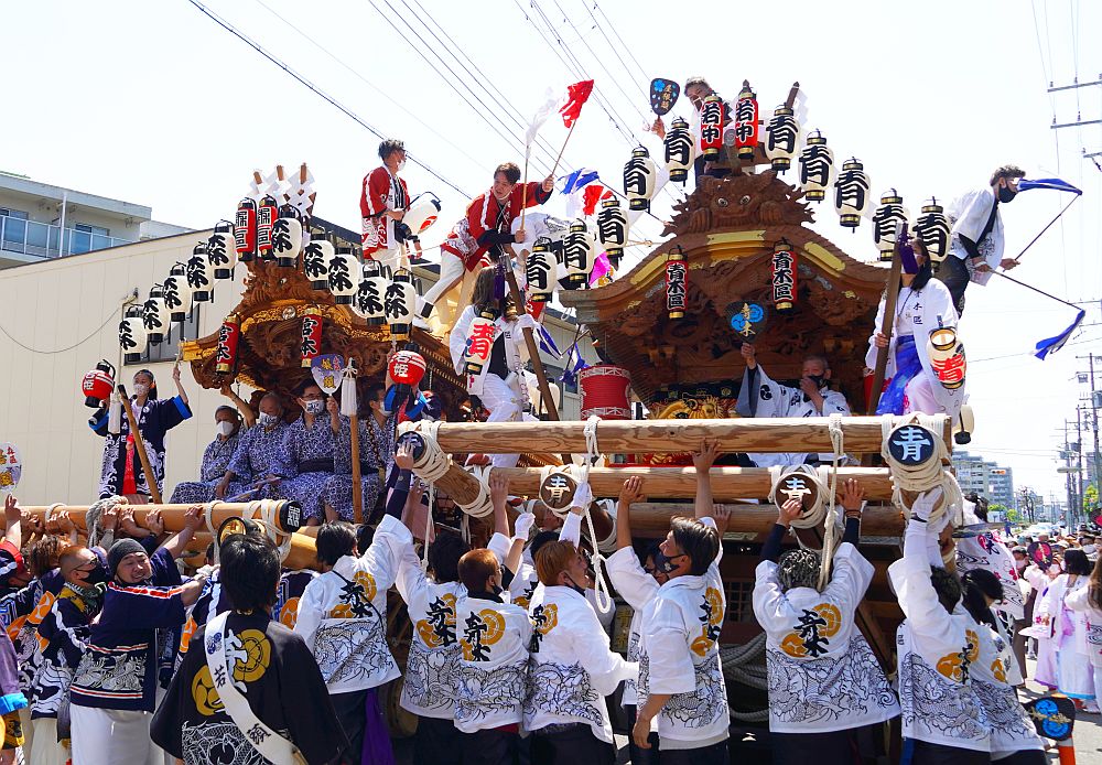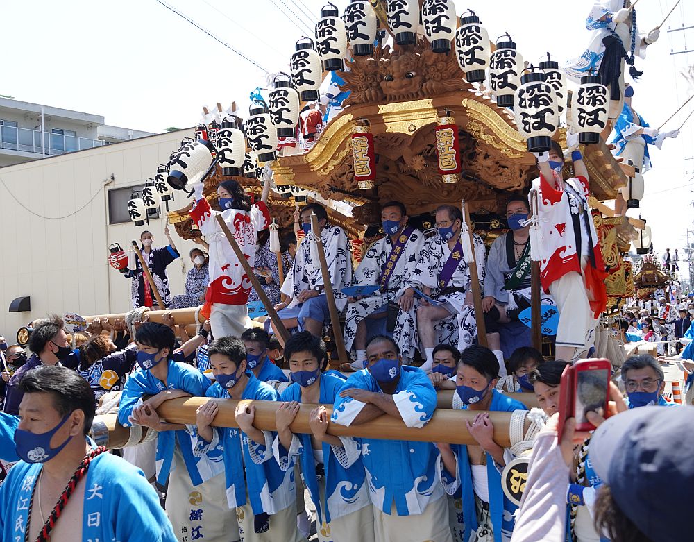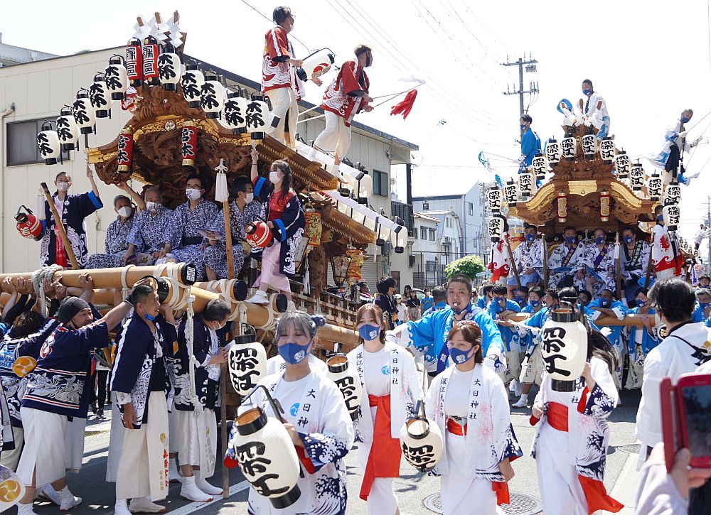 例年では森・深江・青木の3町地車による合同曳行、合同煉り合せ、