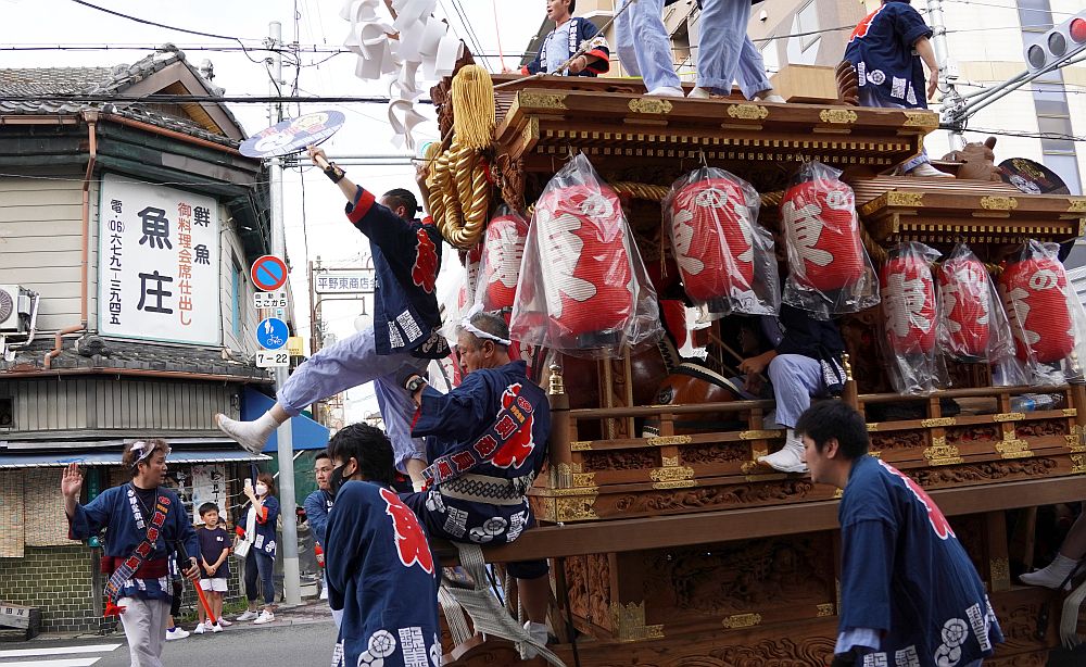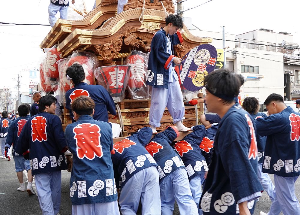 では、平野区の平野郷夏祭り試験曳き5:野堂東組画像をご覧下さい。