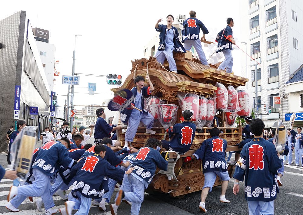 交差点内を進む野堂東組地車