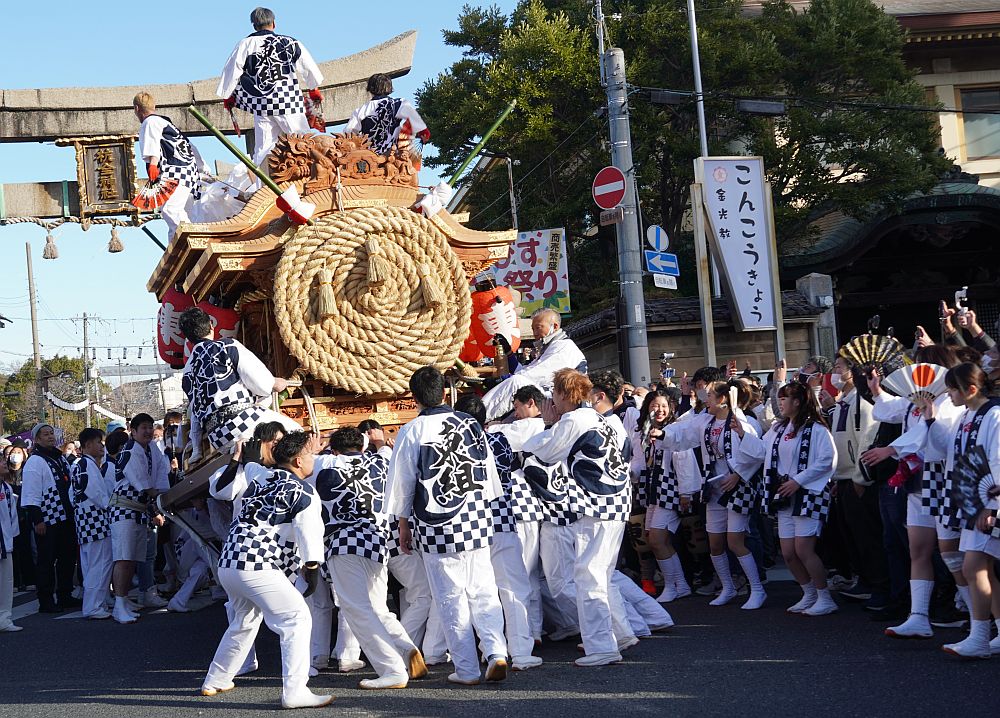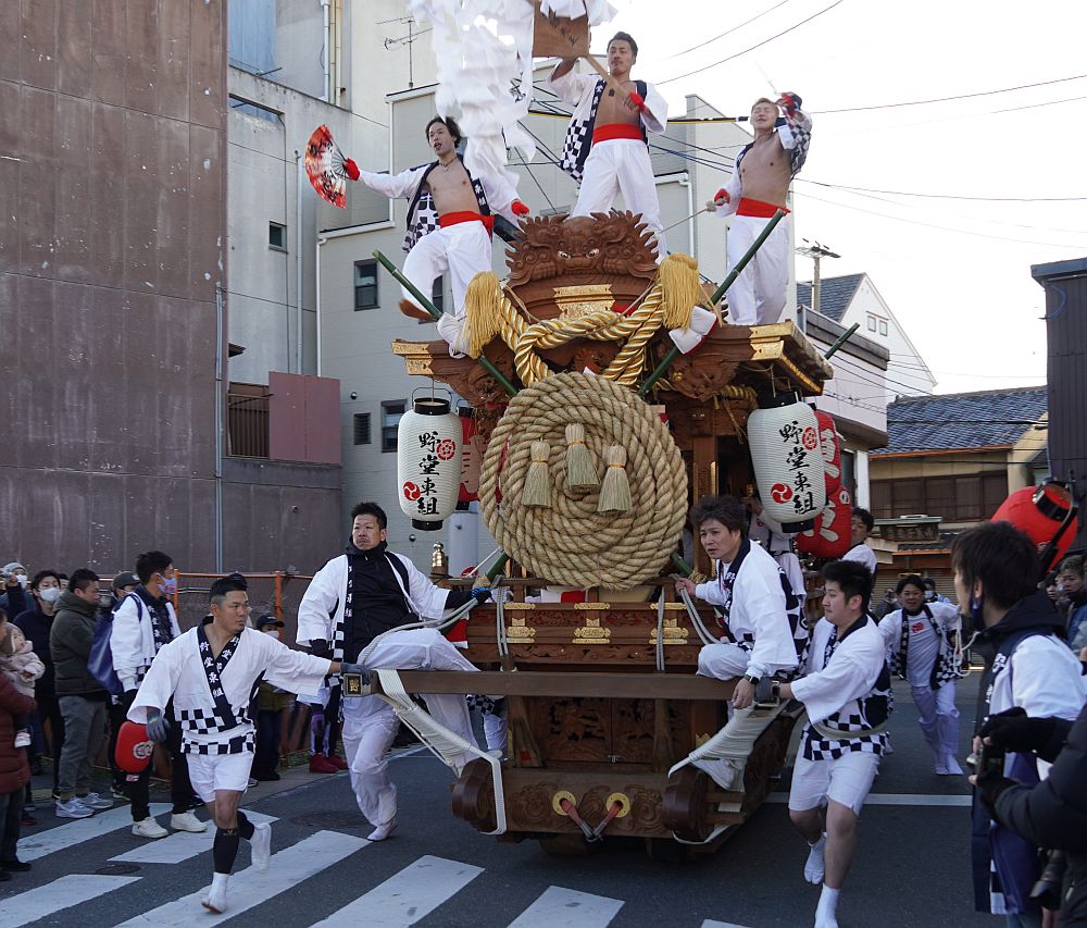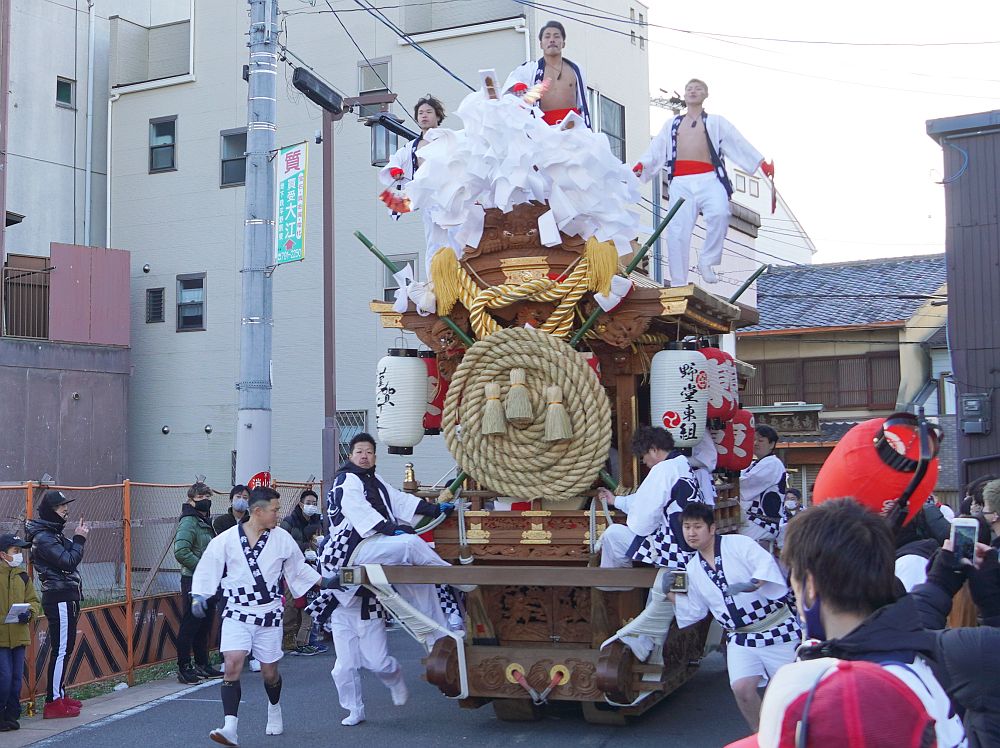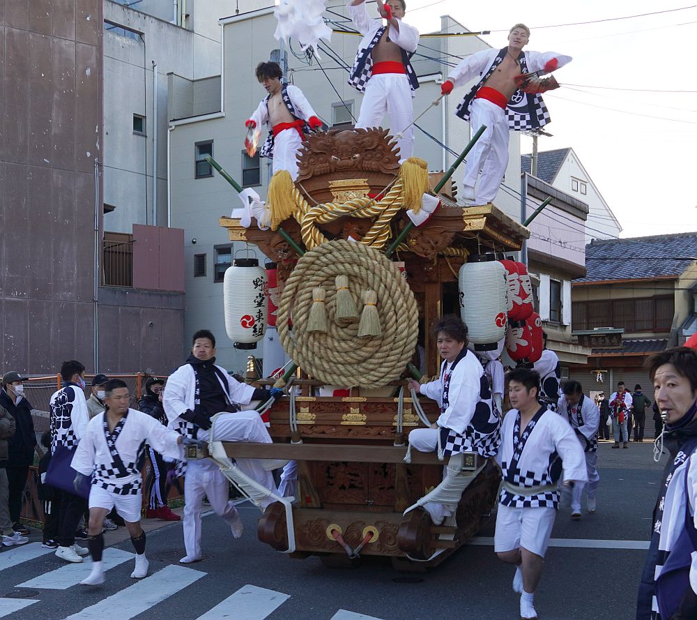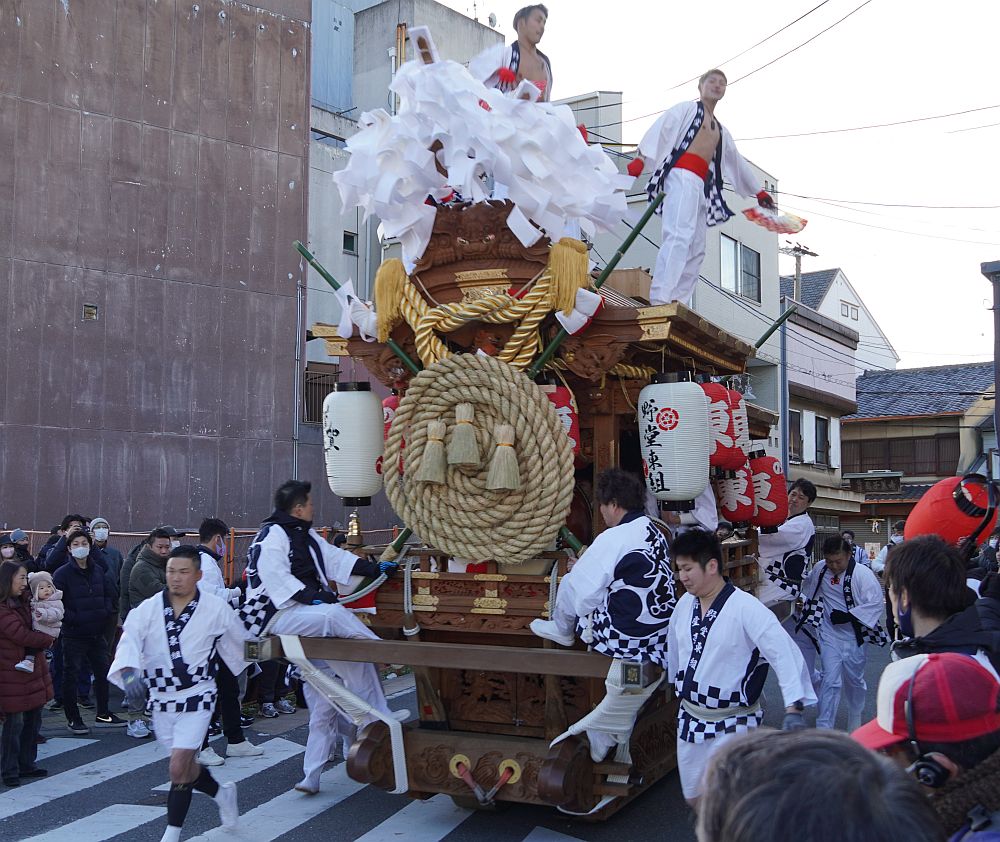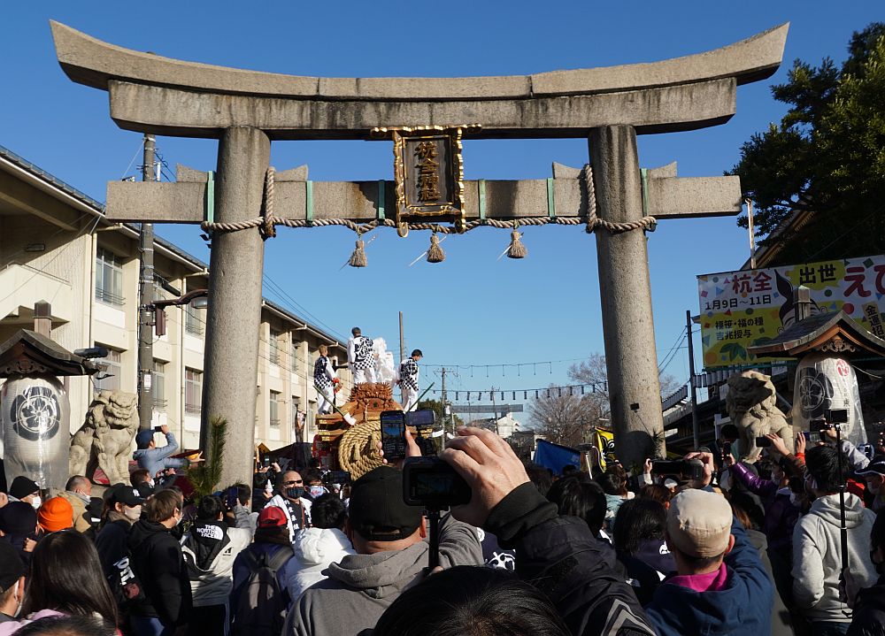 令和5年1月3日、平野区の杭全神社注連縄上げを見に行ってきました。 正月恒例の杭全神社注連縄上げ行事が3年振りに行われました。 このおめでたい正月行事の注連縄上げだんじり曳行が今年の私の だんじり見物始め、嬉しいですわ。 今年の注連縄上げ当番町は野堂東組でした。 ここでは宮入前の宮前交差点での練り回し後半画像を紹介します。 では、平野区の杭全神社注連縄上げ4:宮前2をご覧下さい。