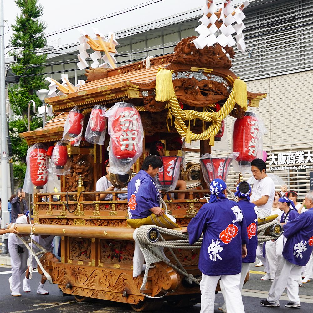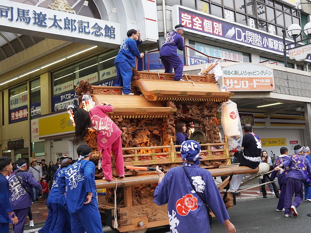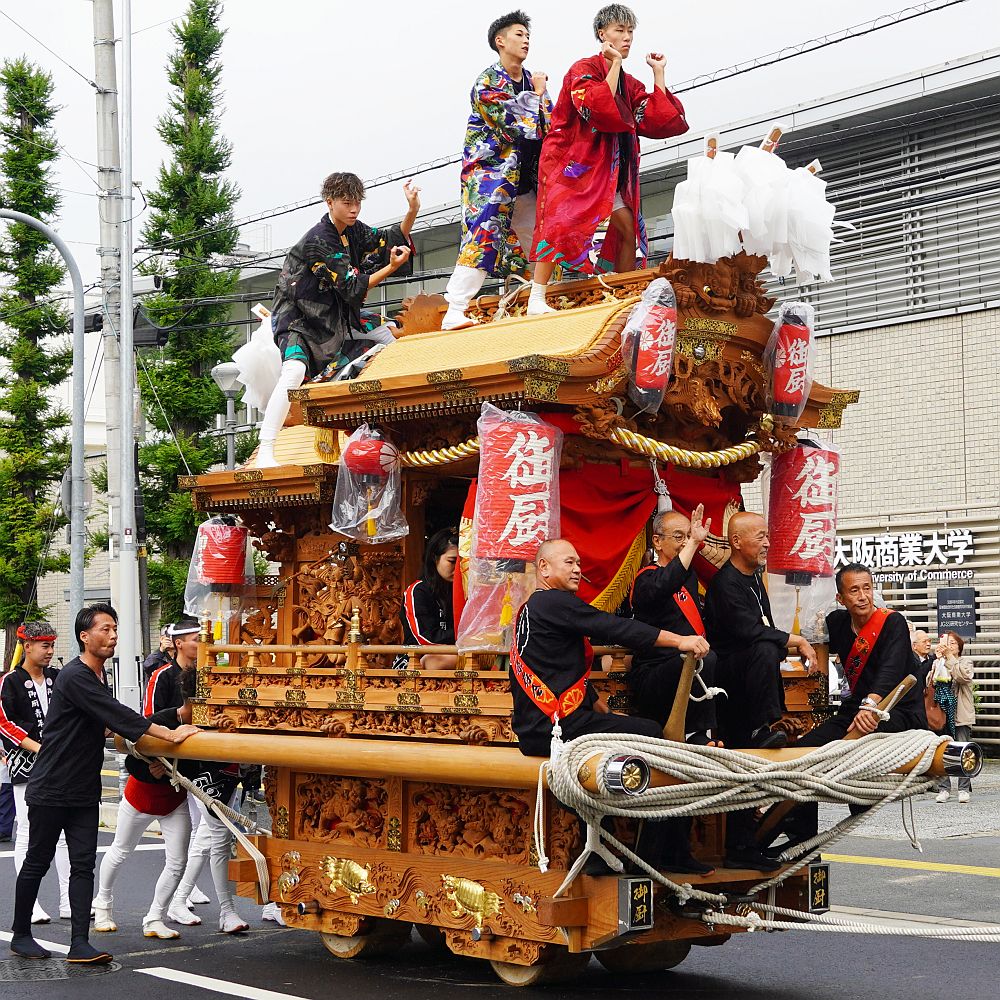 大阪商業大学校内に並んだ3町地車