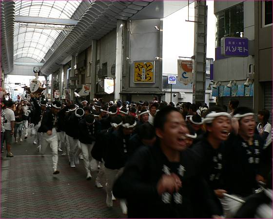 商店街の中をあっという間に南上町地車が通り過ぎていきました。