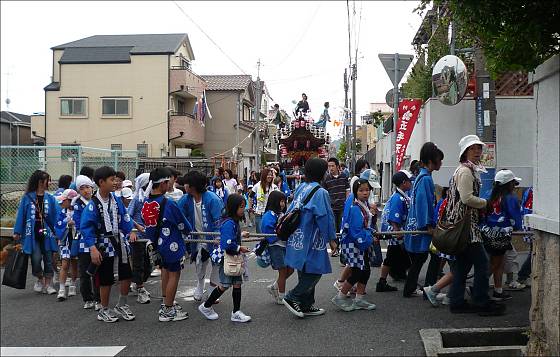 五毛地車とともに坂道を下ったあと、地車集結までしばらくの間、灘区の山手の