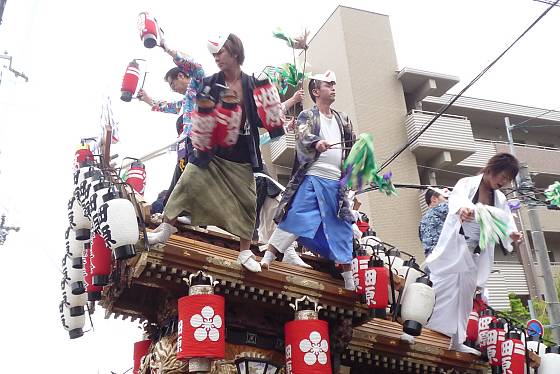 五毛・上野・畑原そして篠原の4台の地車が集結した後、4台の地車は連なって