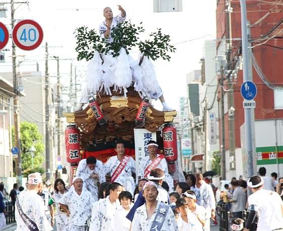 ここでは東成郵便局から会場までの地車パレード曳行を紹介します。