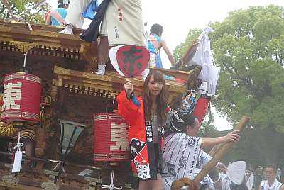 東之町地車の肩脊には女の子が乗っています。