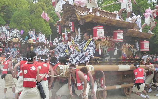 そして西之町地車も前を担ぎ上げて境内を周回します。