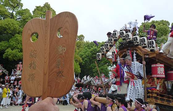 総指揮の軍配が上がる前を西御影地車が進みます。