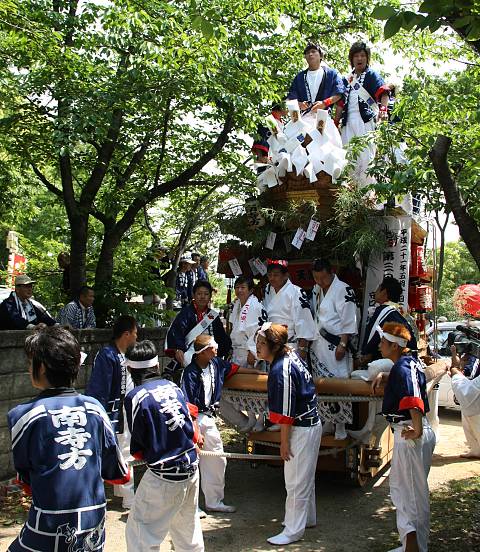 南寺方地車が公園に入ってきました。