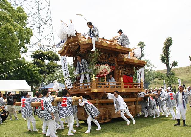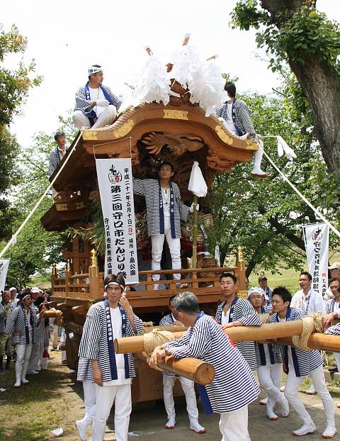 9台の地車が下島公園に入って整列待機した後、午前11時過ぎ、会場である
