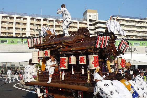 横沼地車が駅前広場へ入って行きます。
