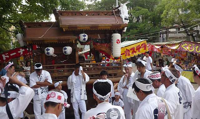 では、東成区八王子神社の中本地車夏祭り曳行画像その1:宵宮1をご覧下さい。